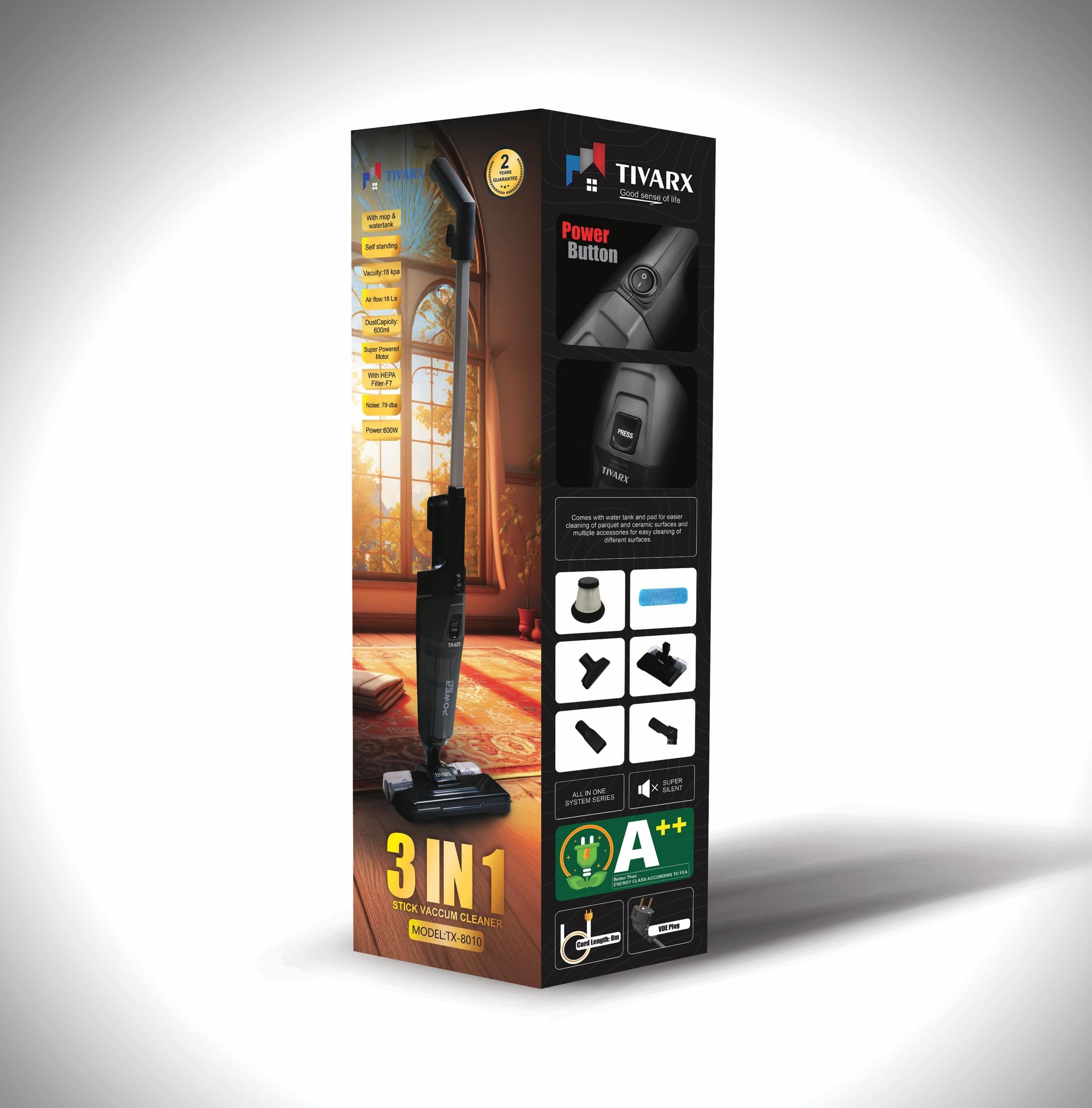 جاروبرقی پرتابل تیوارکس مدل TX‑8010 اساس عملکرد جاروبرقی تیوارکس 8010، موتور قدرتمند 600 واتی آن است. اما وجه تمایز کلیدی، کیفیت ساخت این موتور با سیم‌پیچ مسی است. این انتخاب مهندسی ، به معنای دوام بالاتر، بازده انرژی بهتر و مقاومت بیشتر در برابر گرما حین کار است .بنابراین عواملی که مستقیماً به عملکرد پایدار و طول عمر بیشتر دستگاه منجر می‌شوند. توان 600 وات برای دستگاهی در این ابعاد ، نیروی مکش چشمگیری را فراهم می‌کند که برای جمع‌آوری مؤثر انواع آلودگی‌های روزمره، از گرد و غبار ریز گرفته تا پرز و مو، روی سطوح گوناگون کاملاً مناسب و کارآمد است.